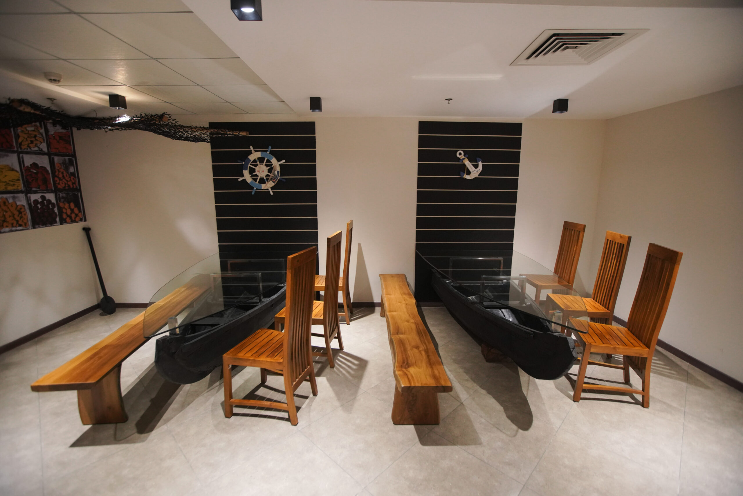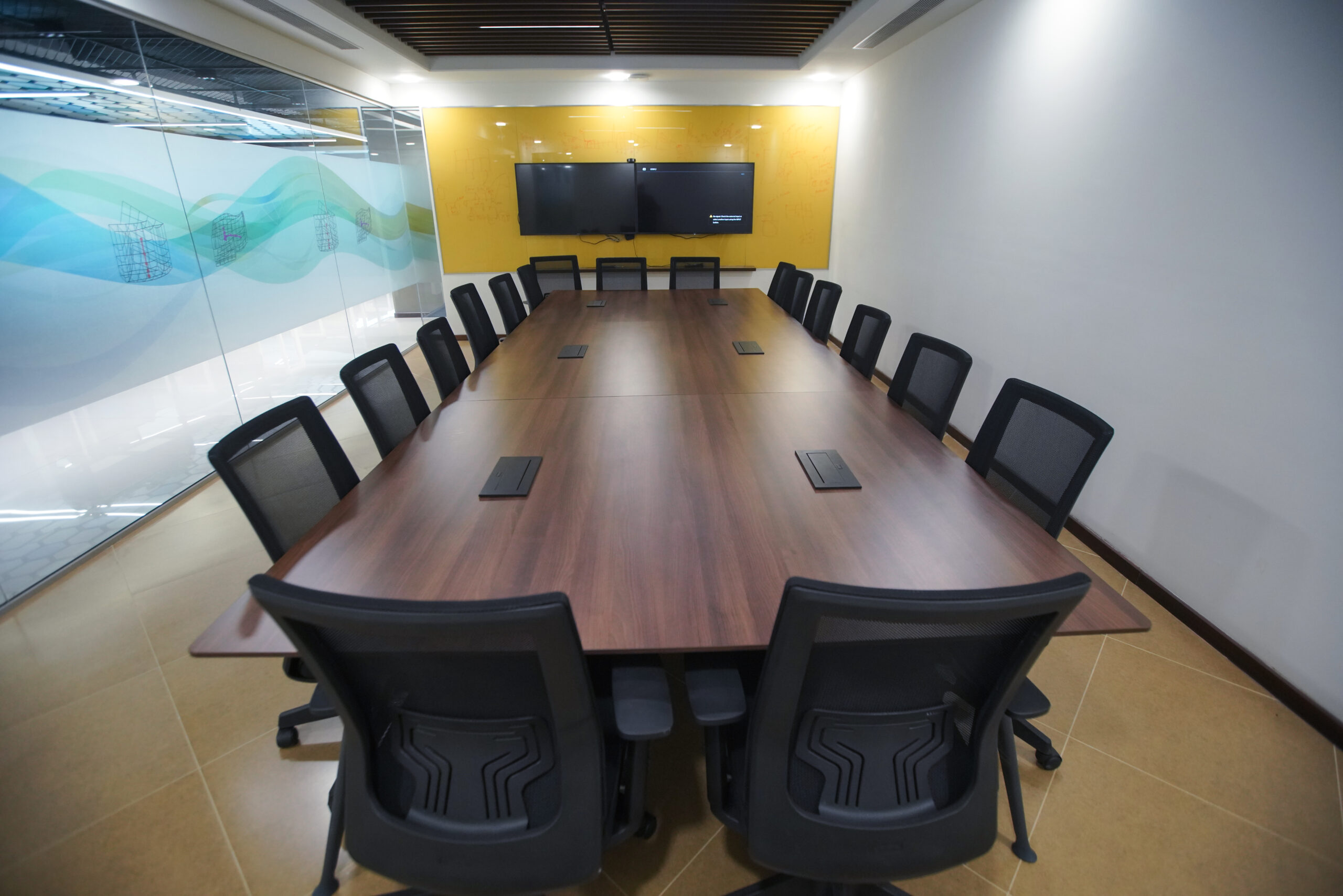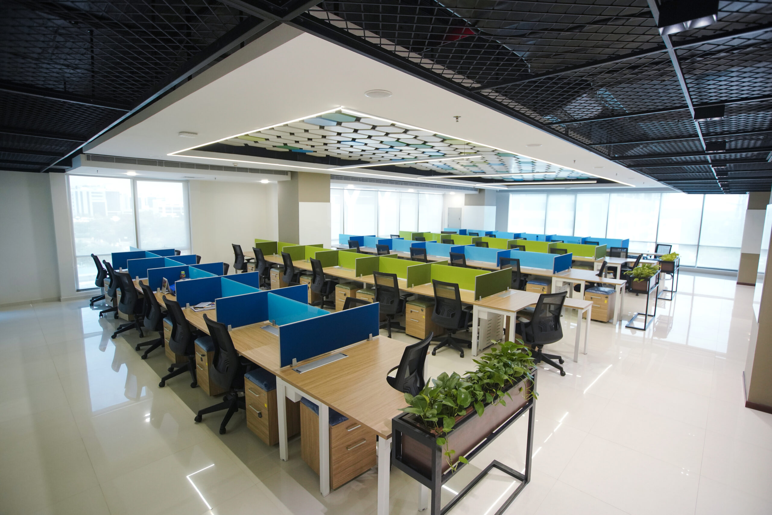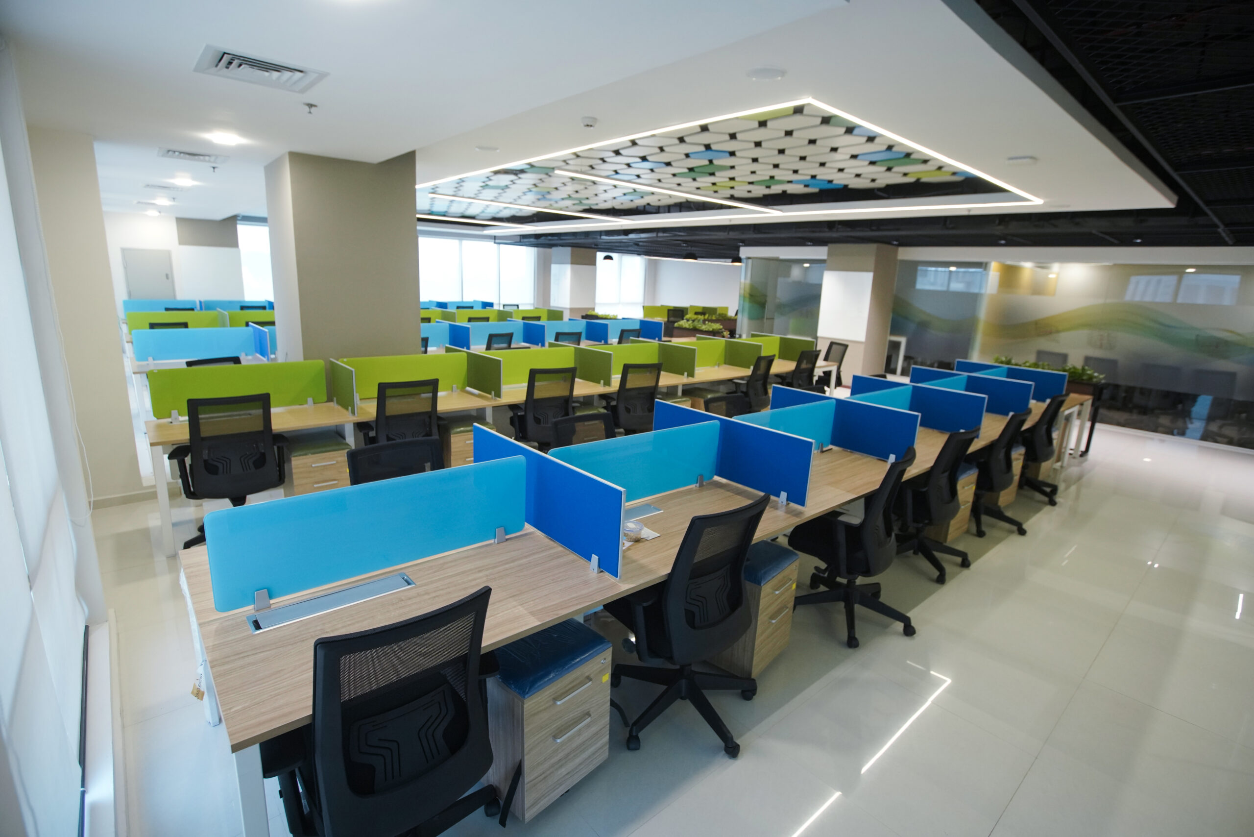 We designed INERG’s corporate office to embody flow, movement, and collaboration. The minimalistic reception features exquisite furniture and a sculptural fin-clad countertop, echoing fluidity. A dynamic baffle ceiling mimics waves, enhancing spatial rhythm. The workstation area integrates biophilic elements, with planter boxes and a hexagonal ceiling resembling a honeycomb—symbolizing unity. Custom in-house furniture fabrication ensures seamless integration. The conference room boasts high-tech support for global meetings. A Kerala-inspired pantry, with tea stall-themed graphics and cargo boat-inspired furniture, adds local character. The cohesive color palette, balancing blues, greens, wood, and white, reinforces harmony and productivity in this meticulously curated workspace.